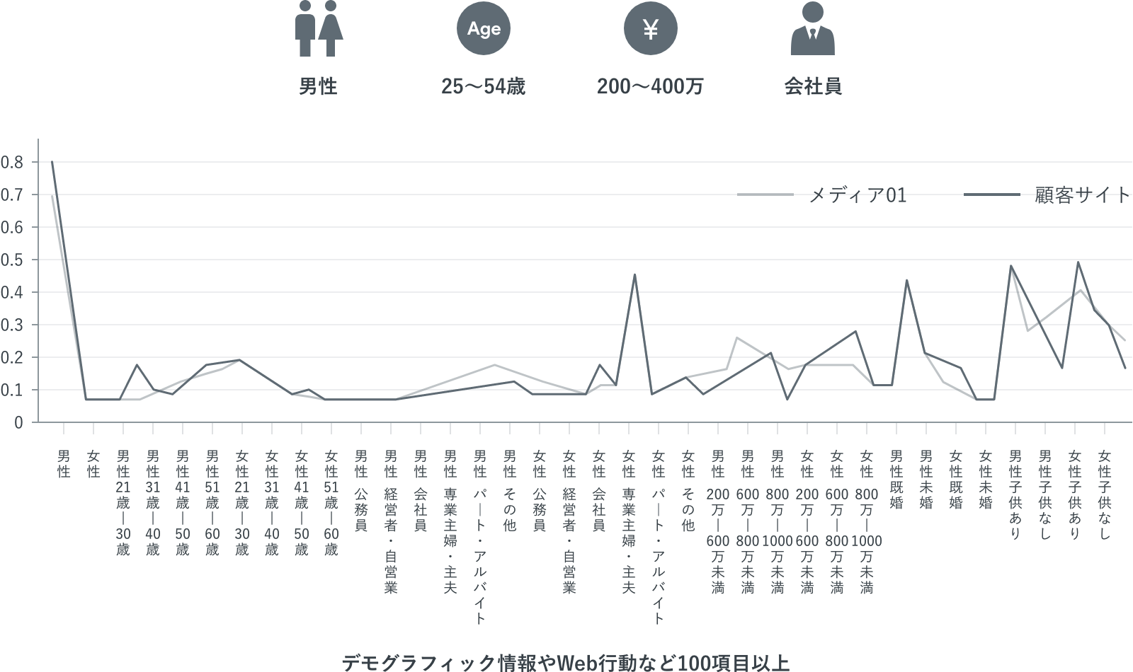 提携メディアの来訪ユーザーの分析、コンテンツ接触価値の可視化をおこない、広告出稿主、各DSP企業への販売促進に活用しております。