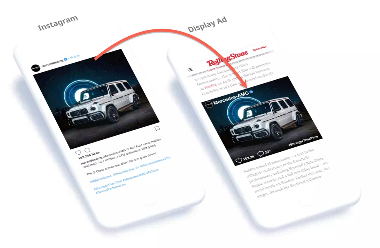 本提携により、「ソーシャルディスプレイ広告」で生成された広告クリエイティブを、株式会社マイクロアドが提供する広告配信プラットフォーム「UNIVERSE Ads」を通じて様々なメディアに配信可能となります。これにより、広告主企業のSNSアカウントへの流入を促進するとともに、従来よりも高い広告パフォーマンスを実現します。 欧米では既に、BMW、アウディ、メルセデス・ベンツ、コカ・コーラ、ペプシ、レッドブル、UGG、hp、キャノンなど数多くのブランドに採用されており、従来のディスプレイ広告と比較して、CTRで1.25~2.65倍、ROASで2.4〜5倍の結果が得られた導入実績があります。(※Spaceback社調べ)